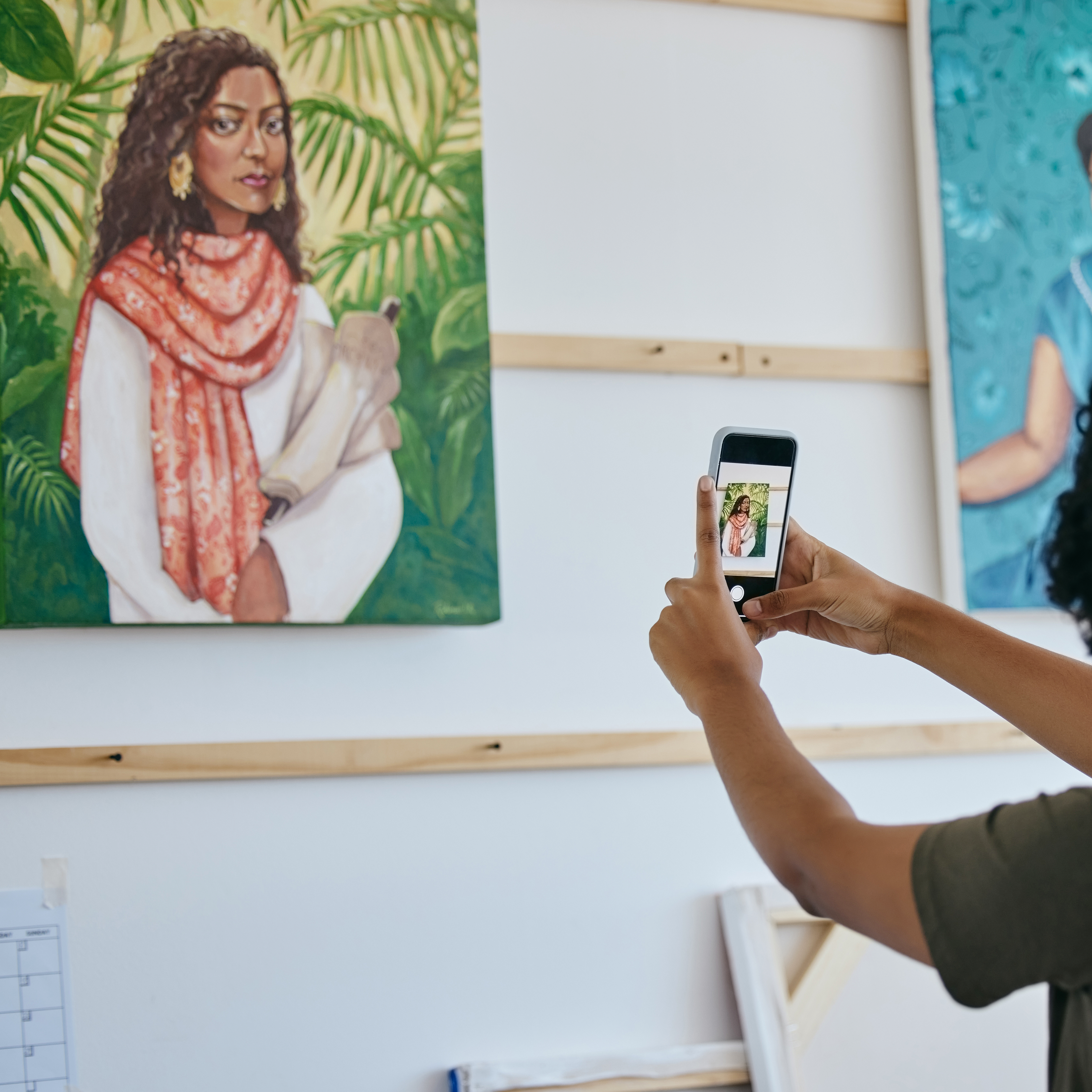 A simple capture process that can be done with any modern phone! Take a photo of your entire painting and then step closer to take angled detail photos. Artzip will guide you the whole way.